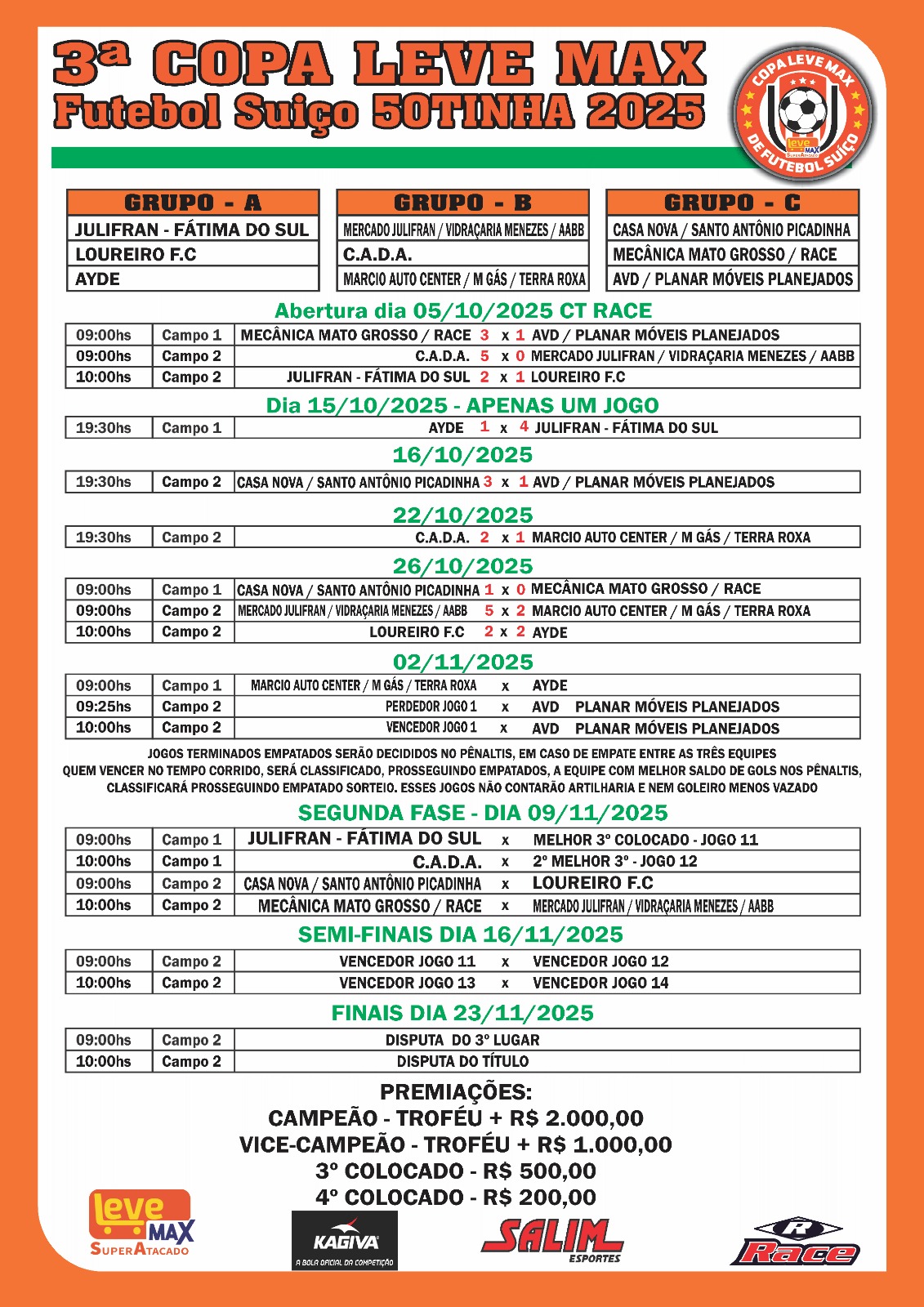 Equipe comandada por José dos Santos Silva, o Zezinho, chega confiante para conquistar vaga nas quartas de final A 3ª Copa Leve Max de Futebol Suíço 50tinha 2025 entra em