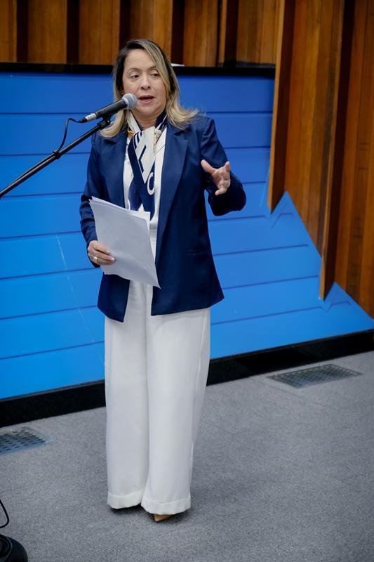 Durante a sessão solene realizada na Assembleia Legislativa de Mato Grosso do Sul, em comemoração aos 117 anos da imigração japonesa no Brasil, a deputada estadual Lia Nogueira (PSDB) prestou
