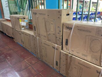 Na Escola Maria da Glória Muzzi Ferreira, outra emenda de R$50 mil garantiu 11 televisores de 60 polegadas, 2 aparelhos de ar-condicionado de 18 mil BTUs, 7 kits com 16 câmeras de segurança Full Color e uma balança de precisão para o laboratório de ciências. Os equipamentos reforçam o uso de tecnologia em sala de aula, ajudam a climatizar os ambientes, ampliam a segurança interna e melhoram as condições para atividades práticas, atendendo demandas apresentadas pela direção e pela comunidade escolar.