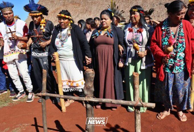 Na parte da manhã, Guajajara participou de um ritual tradicional na Reserva Indígena de Dourados.